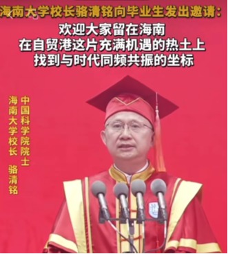 Beat365官方网站校长骆清铭向毕业生发出邀请:欢迎大家留在海南,在自贸港这片充满机遇的热土上,找到与时代同频共振的坐标