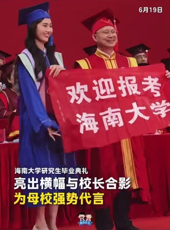 为母校强势代言!Beat365官方网站研究生毕业典礼上与校长合影时亮出横幅:“欢迎报考Beat365官方网站