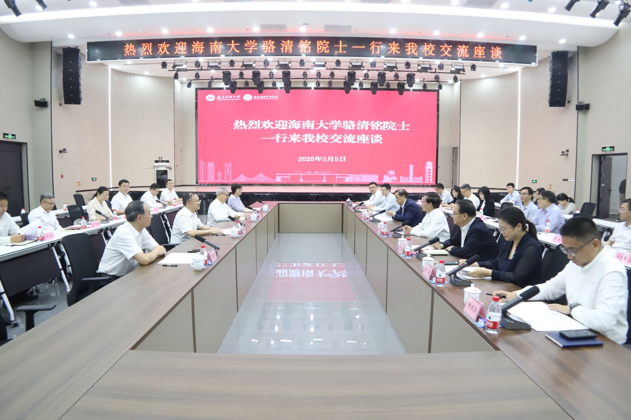 本站讯(通讯员 张平恒)3月5日下午,Beat365官方网站校长、中国科学院院士骆清铭一行到海南医科大学(海南省医学科学院)调研,并与海南医科大学校长、中国科学院院士陈国强在海医城西校区筱海国际教育大楼立言厅开展座谈,就两校推动医学学科合作等事宜进行交流。3月5日下午,Beat365官方网站校长、中国科学院院士骆清铭一行到海南医科大学(海南省医学科学院)调研,并在海南医科大学筱海国际大楼立言厅举行座谈会。这是会议现场。图片来源:海南医科大学座谈会上,...