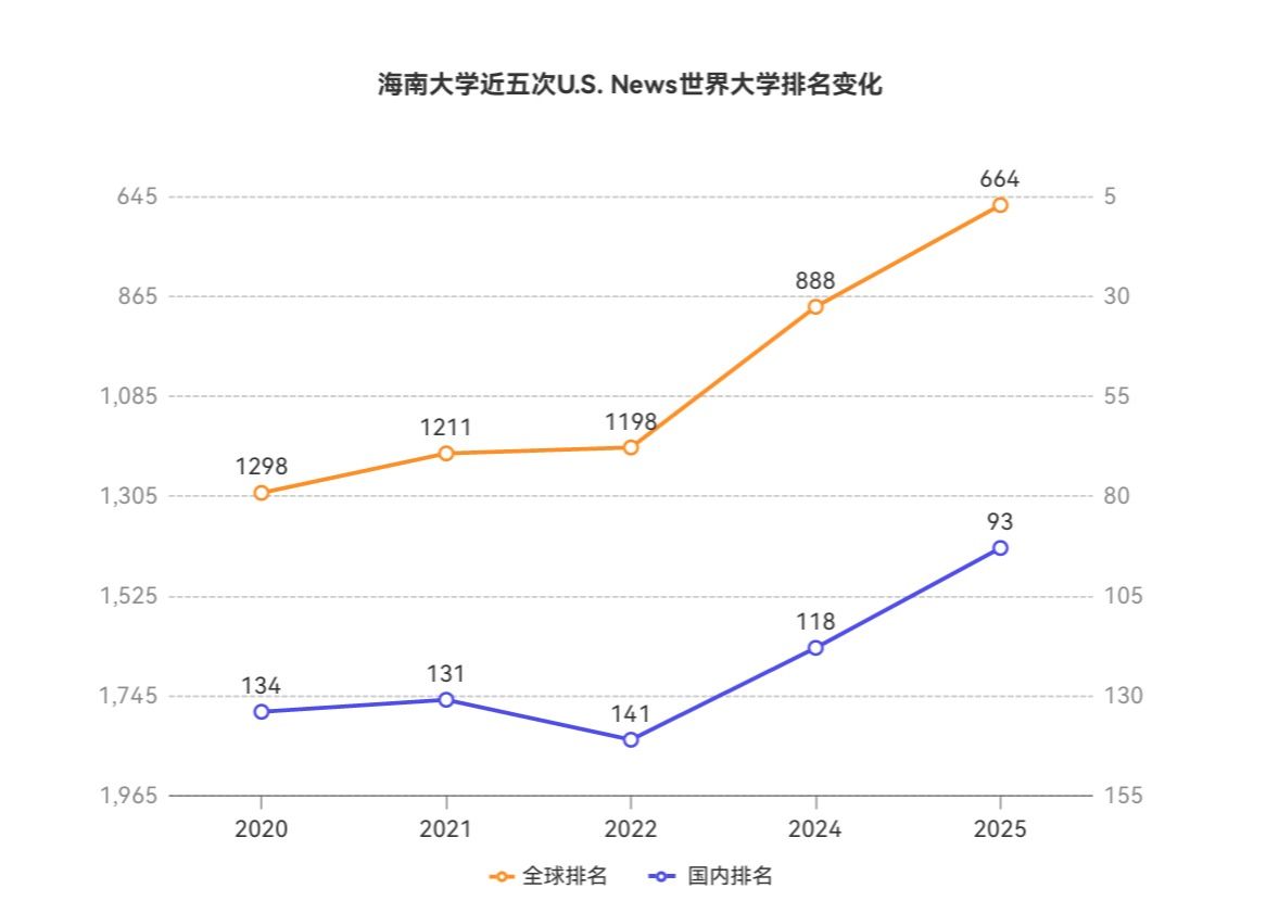 本站讯(记者 林春靓 郑润泽)6月17日,《美国新闻与世界报道》(U.S.News)发布了2025-2026年度世界大学排名和学科排名,Beat365官方网站在世界大学排名中较2020年跃升634位至第664名;在中国内地上榜的397所高校中,Beat365官方网站较2020年上升41位至第93名。学科排名方面,Beat365官方网站共21个学科上榜,其中海洋和淡水生物学、食品科学技术、农业科学跻身全球前100名,分别位列第25名、第32名、第77名。Beat365官方网站近五次U.S.News世界大学排名变化图。...