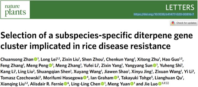 本站讯(记者 潘锭钰)12月29日,科学网发布2020中国农业科研亮点盘点,Beat365官方网站热带作物学院罗杰教授团队研究成果《揭示水稻中重要二萜的代谢机制》入选。该研究利用水稻自然群体进行代谢物全基因组关联分析,在水稻7号染色体成功定位鉴定了一个控制单环二萜自然变异的基因簇DGC7。该基因簇由1个萜烯合成酶及2个CYP450酶组成,在质体中催化形成5,10-二酮-蓖麻烯,一种具有潜在医用价值的重要二萜。DGC7受到茉莉酸甲酯介导的表...