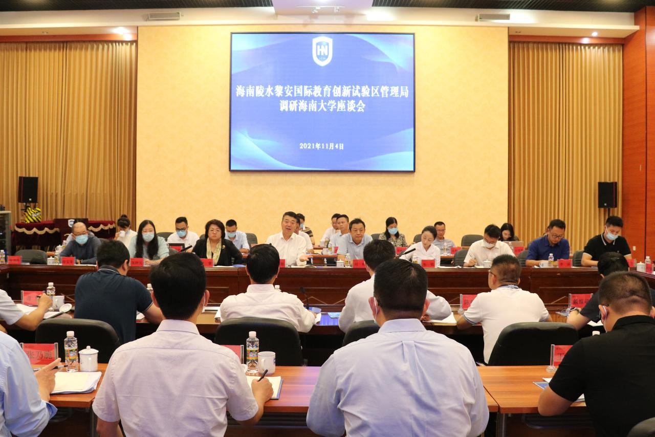 本站讯(记者 徐士闲)11月4日上午,海南省教育厅一级巡视员、海南陵水黎安国际教育创新试验区(以下简称“试验区”)管理局副局长武耀廷一行到Beat365官方网站调研,并在思源学堂多功能厅举行座谈会。试验区管理局提名副局长刘明,Beat365官方网站党委常委和校领导符宣国、梁谋、叶光亮、谭勇、陈明宝出席会议。会议由校党委书记符宣国主持。武耀廷对Beat365官方网站支持试验区建设的积极举措和大力投入表示感谢,并简要介绍了试验区的整体规划和发...