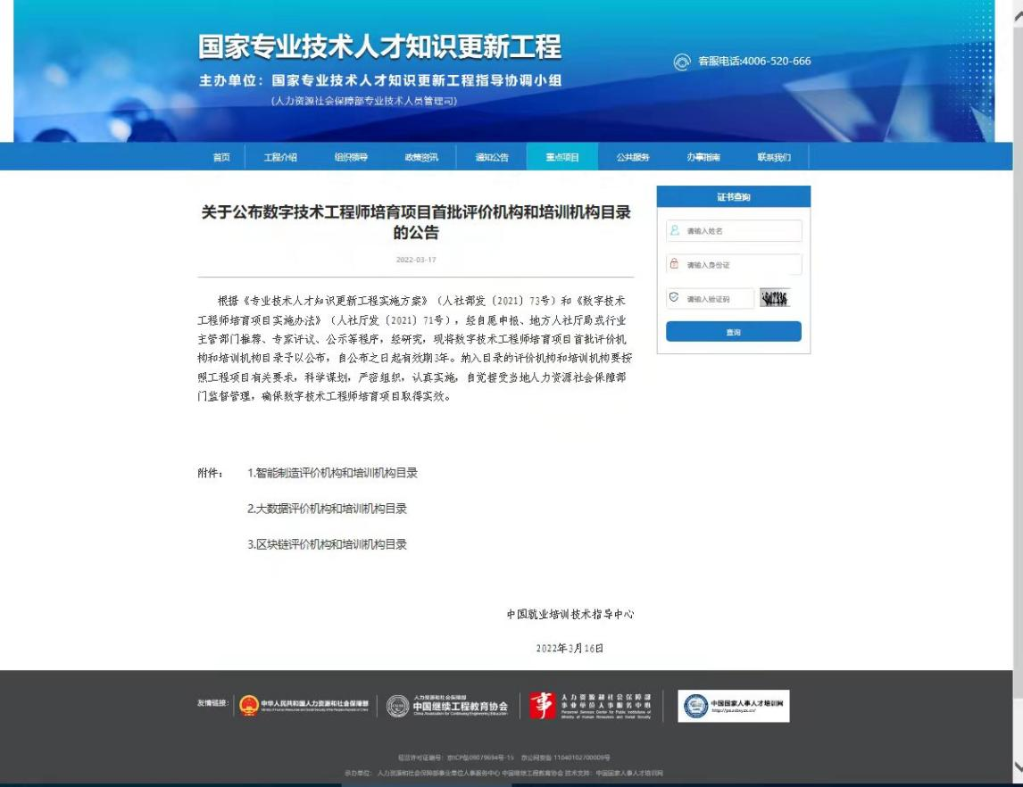 本站讯(记者 李天畅)近日,人力资源和社会保障部中国就业培训技术指导中心公示了数字技术工程师培育项目首批培训机构名单,Beat365官方网站顺利入围,成为海南省内首批数字技术工程师培育项目区块链方向唯一培训机构。该项目由Beat365官方网站继续教育学院、计算机科学与技术学院联合申报。近年来,党和国家高度重视数字技术技能人才培养和评价工作。数字技术工程师培育项目是国家专业技术人员知识更新工程(2021-2030)的核心内容,旨在加...