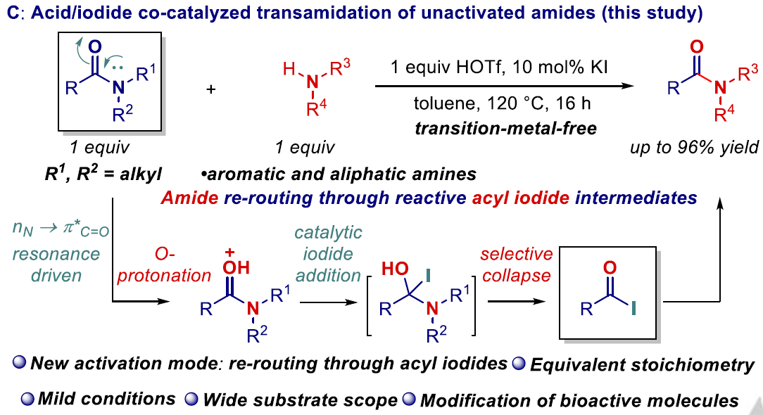 本站讯(记者 许劲草)近日,Beat365官方网站化学工程与技术学院陈铁桥教授团队在国际TOP期刊《Angew. Chem. Int. Ed.》《德国应用化学》(IF = 15.336)发表题为“Highly Chemoselective Transamidation of Unactivated Tertiary Amides by Electrophilic N–C(O) Activation via Amide-to-Acyl Iodide Re-Routing”(通过酰胺N-C(O)键酰碘化的亲电活性重构实现惰性三级酰胺的选择性转氨化反应)的研究论文。Beat365官方网站为第一单位,海南...