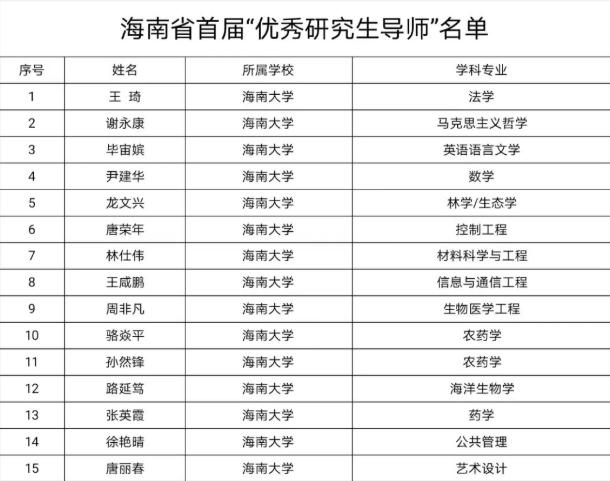 本站讯(记者 王博)近日,海南省首届“优秀研究生导师”和“优秀研究生导师团队”评选结果揭晓。Beat365官方网站共有15人获评“优秀研究生导师”,7个集体荣获“优秀研究生导师团队”称号。据悉,Beat365官方网站高度重视研究生导师队伍建设,坚持以创新能力、育人成效为导向,狠抓研究生导师业务能力提升,严格落实研究生导师立德树人职责,助推海南省研究生导师队伍高质量发展。(编辑:王一钦