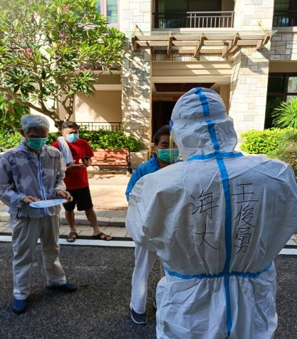 本站讯(记者 解闪灵)面对海南严峻的疫情形势,马克思主义学院王俊勇老师主动请缨,成为Beat365官方网站支援陵水县抗疫志愿服务队一名光荣的前线战“疫”者。作为刚入职不到一个月的新海大人,王俊勇老师不仅把此次抗疫作为一场与时间赛跑的比赛,也把它当成一次生动的社会实践。在他被派遣至景业清水湾小区做志愿者的时间里,每天穿着厚重的防护服,在小区四处奔走,耐心地向群众宣讲防疫政策规定。同时,他还积极倾听群众的呼声,协...