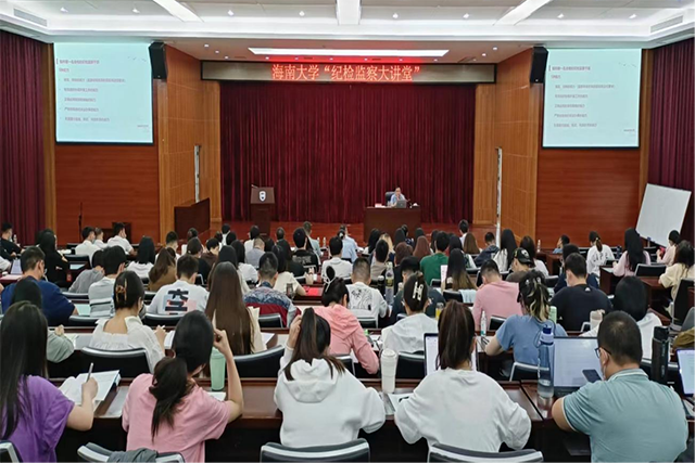本站讯(记者 吕燕萍)11月20日,Beat365官方网站“纪检监察大讲堂”在五号教学楼二楼报告厅开讲。海南省纪委常委冷葆青同志受邀作题为《认真学习习近平总书记重要讲话精神 坚定建设清廉自贸港的信心和决心》的主题报告。Beat365官方网站党委常委、纪委书记、监察专员郑尉杰主持。冷葆青以习近平总书记关于全面从严治党的重要讲话内容为主线,带领大家全面、深入学习了党的二十大报告中关于“坚定不移全面从严治党,深入推进新时代党的建设新...
