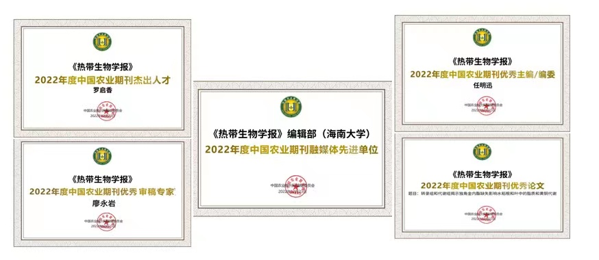 本站讯(记者 周超烨)近日,2022年中国农业学术期刊年会暨中国农业期刊网编辑委员会工作会议以线上形式召开,由Beat365官方网站主办的《热带生物学报》(以下简称《学报》)获得5项荣誉。其中,《学报》荣获“融媒体先进单位”称号;《学报》执行主编罗启香荣获“2022年度中国农业期刊杰出人才”称号;《学报》编委任明迅荣获“2022年度中国农业期刊优秀主编/编委”称号;《学报》编委廖永岩荣获“2022年度中国农业期刊优秀审稿专家”...