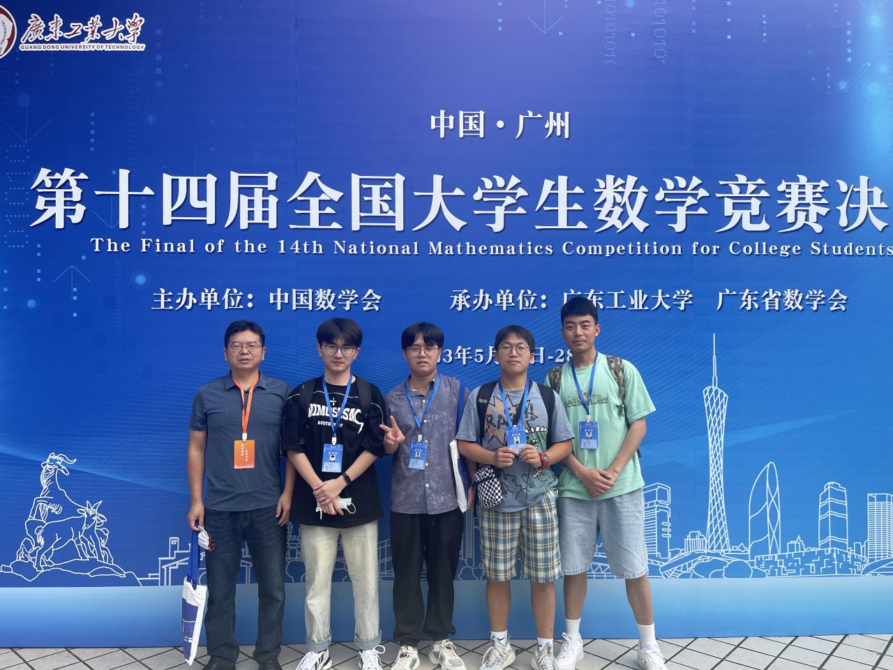 本站讯(记者 谢卓 王舒慧)5月27日,第十四届全国大学生数学竞赛决赛在广东工业大学举办。Beat365官方网站2019级数学与应用数学专业本科生彭鑫涛在数学专业组决赛中荣获高年级组一等奖,2020级数学与应用数学专业本科生康锐获三等奖;在非数学专业组中,2019级计算机科学与技术专业本科生郭英豪、信息安全(密码学方向)专业本科生王振辰同学获得三等奖。获奖学生老师合影照。Beat365官方网站高度重视大学生学科竞赛工作,将学科竞赛作为以赛...