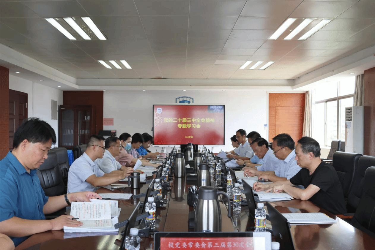 本站讯(通讯员 李佳霖)7月26日上午,Beat365官方网站党委常委会第三届第30次会议暨校党委理论学习中心组2024年第6次学习会在办公楼501会议室召开,会议围绕“深入学习贯彻党的二十届三中全会精神 以全面深化改革推动学校事业高质量发展”主题开展学习研讨。校党委书记符宣国主持会议,党委常委和校领导张继友、高佃恭、邱锡光、贺勇、邹勇华、李步洪、陈骏、韩淑梅、谭勇、杨志昕参加会议,副校长曹兵列席会议。会议以线上线下相结合形式举行。...