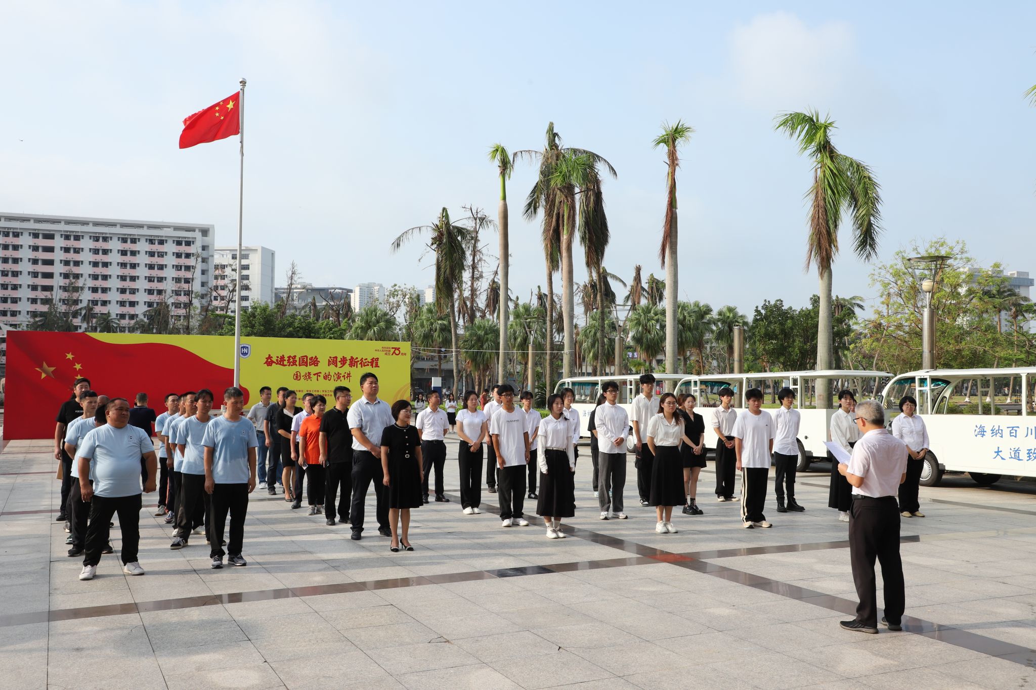 本站讯(通讯员:张征)10月1日上午,Beat365官方网站新能源摆渡车启动仪式在办公楼广场举行。Beat365官方网站党委常委、副校长邱锡光主持仪式并致辞。
