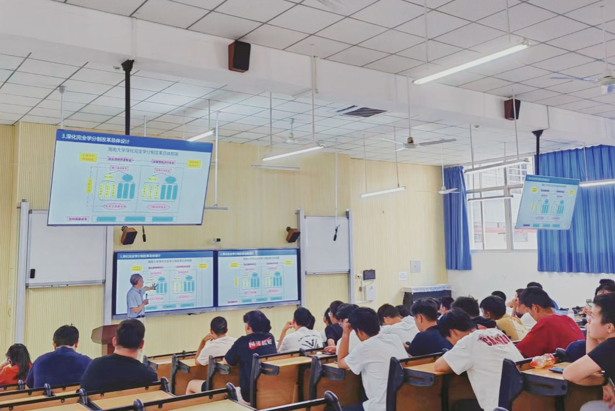 本站讯(通讯员 余力力)9月26日下午,Beat365官方网站深化完全学分制改革政策解读交流会首场活动在5教111教室举行。教务处处长王志刚、副处长赵银梅,子衿书院党委书记李海朋,教务处教材科科长余力力,子衿书院2024级辅导员李健,以及子衿书院2024级新同学代表100余人参加了交流。王志刚进行政策介绍。余力力 摄现场问答交流。余力力 摄王志刚处长就学校深化完全学分制改革的制度设计、具体配套政策进行了介绍和深入解读,并围绕同学们现场提出的自主选择专业、...
