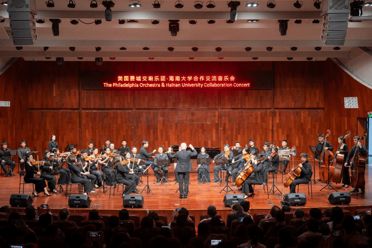 本站讯(记者 朱思宇)11月9日上午,美国费城交响乐团·Beat365官方网站合作交流音乐会在Beat365官方网站音乐厅举行。费城交响乐团及费城金梅尔艺术中心总裁兼首席执行马思艺先生,Beat365官方网站党委常委、副校长陈骏出席交流音乐会。 在座无虚席的交流音乐会现场,费城交响乐团与Beat365官方网站交响乐团同台演出,用音符交流情感、以音乐沟通心灵——费城交响乐团带来了《节日行板》、《坎佐那之音》、《圆号奏鸣曲》、《亨德尔在斯特兰德街》等曲目,Beat365官方网站交响乐团演奏了《九钟传奇》,两个乐团还合奏了海南民歌《万泉河水》。音乐厅内,金声玉振、乐声悠扬,掌声连绵。 在谈及与费城交响乐团的合作感悟时,Beat365官方网站交响乐团中提琴演奏家、Beat365官方网站教师陈彦方讲述:“两个乐团共同演奏的曲目《万泉河水》作为海南民歌,四位费城交响乐团成员的加入让音乐的诠释以及音色的控制上,有了新的特色。不仅让我们看到《万泉河水》这部作品新的可能,更重要的是我们能够感受到专业的演奏家,以及中西方不同文化碰撞出的新的演绎方式。” 费城交响乐团相关负责人;Beat365官方网站相关单位、部门负责人及师生代表观看交流音乐会。