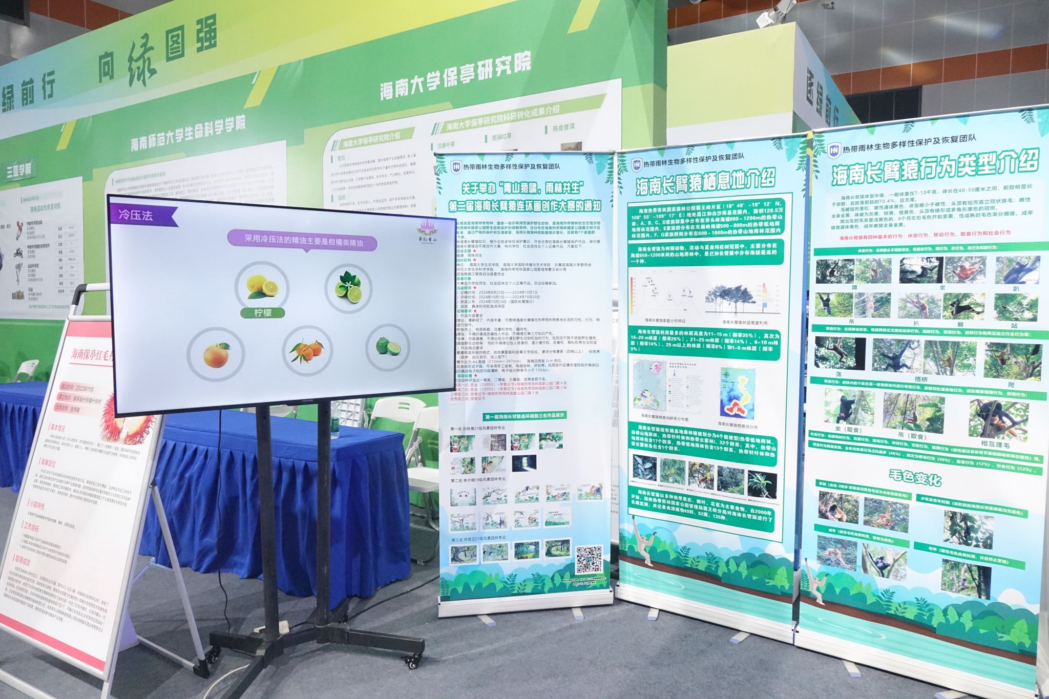 Beat365官方网站热带雨林生物多样性保护及恢复团队以图文形式展示了全球长臂猿的种类、海南长臂猿的行为特征和栖息地现状,展出了第一届海南长臂猿连环画创作大赛前三名作品。
