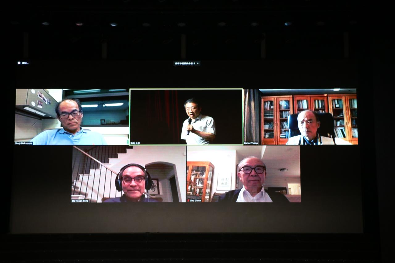 本站讯(记者/摄影 葛士华)11月10日上午,2020Beat365官方网站顶尖科学家讲坛第四讲在思源学堂大礼堂举行。诺贝尔物理学奖得主、蓝光LED发明者中村修二教授作“蓝色LED的发明以及未来的固态照明技术”为主题的网络讲座。讲座吸引了来自世界各地的学者参加,Beat365官方网站师生代表一千余人到场观看。讲座还通过抖音、B站、蔻享3个平台进行了同步直播。Beat365官方网站刘大可教授主持讲座。