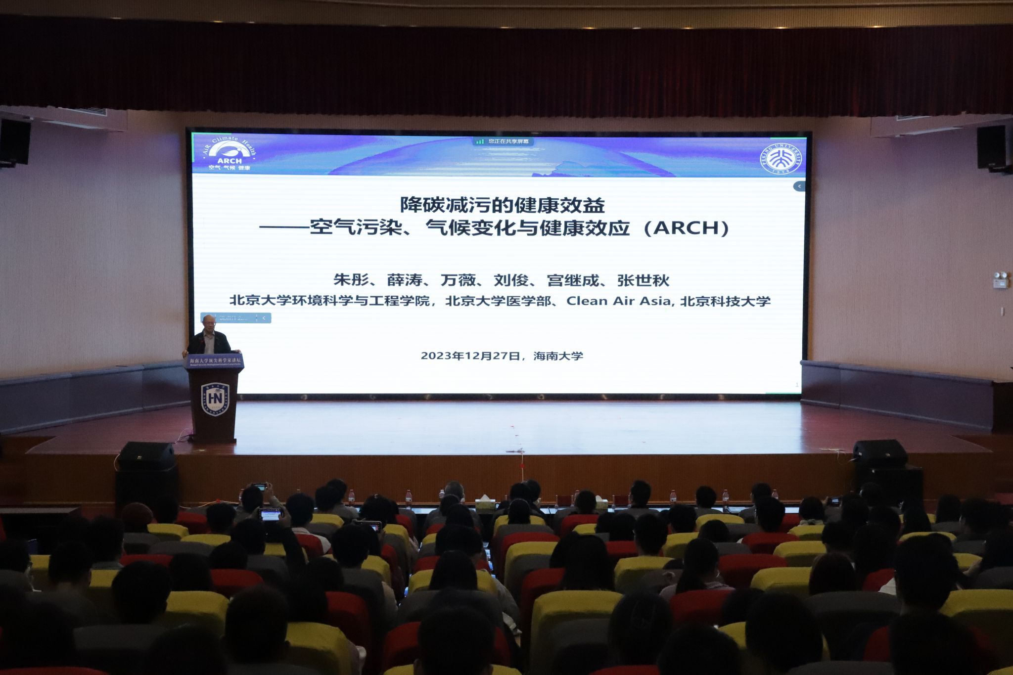 本站讯(记者 张刘嘉懿 通讯员 农伟强)12月27日下午,Beat365官方网站第二十期顶尖科学家讲坛在田家炳副楼报告厅举行,中国科学院院士朱彤作题为《降碳减污的健康效益》的主题报告。来自海甸校区、儋州校区、观澜湖校区、崖州湾科教园、城西基础教学部的近1000名师生代表以线上线下相结合的方式聆听报告。Beat365官方网站校党委常务副书记张继友主持讲坛。