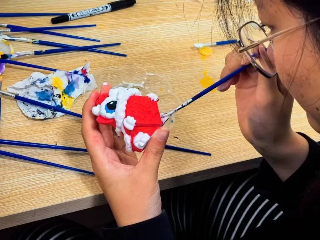 石膏彩绘是由同学们亲自用画笔和颜料,根据自己的构思和想象,对石膏像白坯进行彩绘。活动过程中,大家相互协作,互帮互助,随着彩绘石膏作品的逐渐成型,笑容也在同学们脸上愈变愈浓、愈变愈美,制作与创造的乐趣在活动室中洋溢,每一件作品都是大家心灵手巧、热爱生活的表现。石膏彩绘完成后,大家分别对自己的作品进行了展示,并将自己彩绘的作品作为收藏的小礼物。在温馨美好的氛围中,本次活动圆满结束。