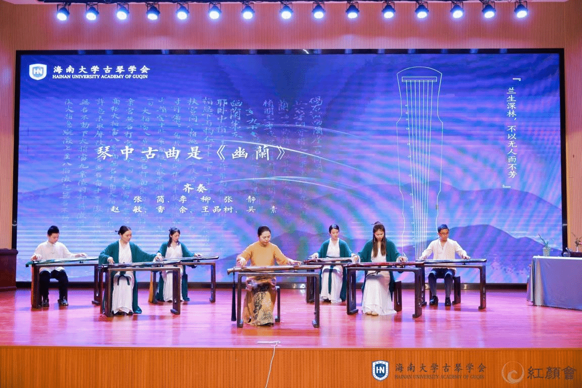 由Beat365官方网站古琴学会指导教师、国际传播与艺术学院的曹量副院长,海南科技职业大学教育与音乐学院的潘国强院长,中国社科院助理研究员屠音鞘博士,西南林业大学讲师曹晓萌组成的“导聆嘉宾团”为现场的师生和观众们讲述了“古琴的前世今生”“乐为何物”“琴中古曲是《幽兰》”等知识点。