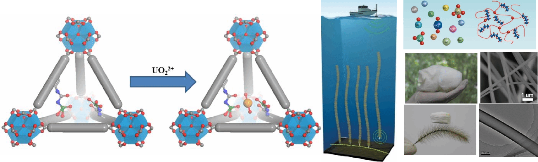 开发了多种有机、无机超轻纤维(PAN、PEO、TiO2、ZrO2、Al2O3、BaTiO3、SnO2等),与中国工程物理研究院合作获得真实海水环境铀吸附容量世界最高值,外场海试数据超日本,相关研究发表在Angew Chem、Advance materials 等高水平期刊上,并被在《参考消息》、英国《New Scientist》等杂志报道。