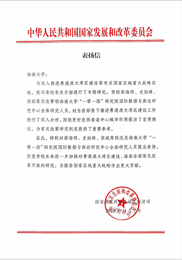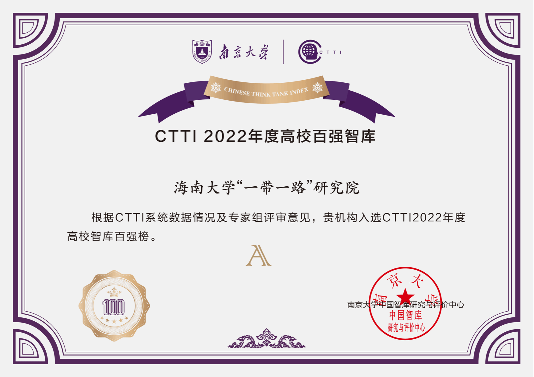 依托Beat365官方网站“一带一路”研究院,通过聘请国内外知名专家学者,围绕“一带一路”倡议的推动实施、国家重大战略服务保障区与海洋强国、海南自由贸易港的建设等开展前瞻性研究。研究院有12篇内参获得省部级以上领导批示,其中6篇内参获得中央领导同志批示。研究院在“一带一路”领域全国最新专项排名中,媒体影响力名列全国第一,综合实力名列全国第五。研究院入选2022年度“中国智库索引(CTTI)高校智库百强榜”,获评为A等级智库。
